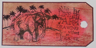 Bei Cuyl werden Zootiere gewünscht, da hätt ich auch was, ein Set aus Karte, ATC und Tag mit PanPastell-Hintergrund: