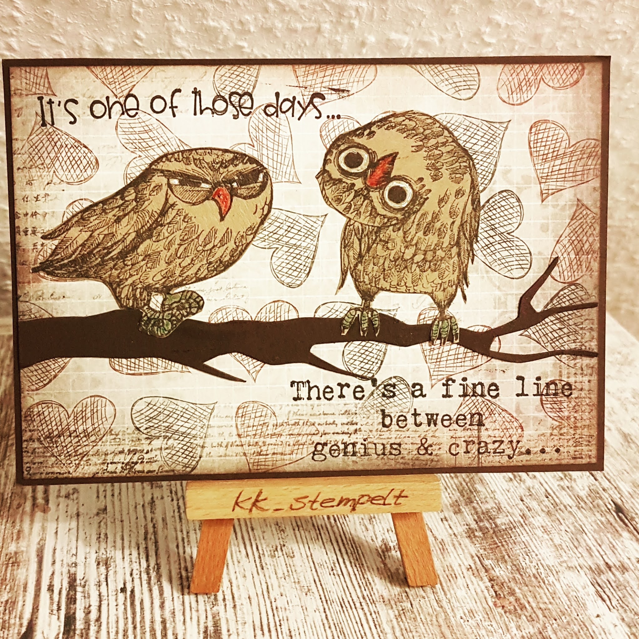 Love those quirky owls, a perfect subject for the shades of brown challenge at Cardz4Guyz. TFS. :)